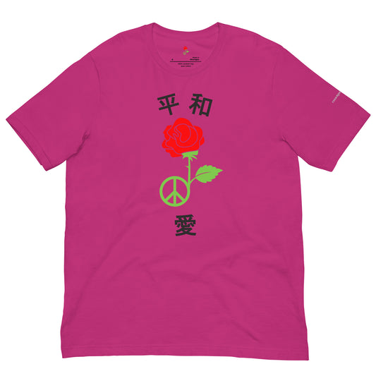 Celebrate peace and positivity with the Rose4Peace “Peace & Love” T- Shirt.